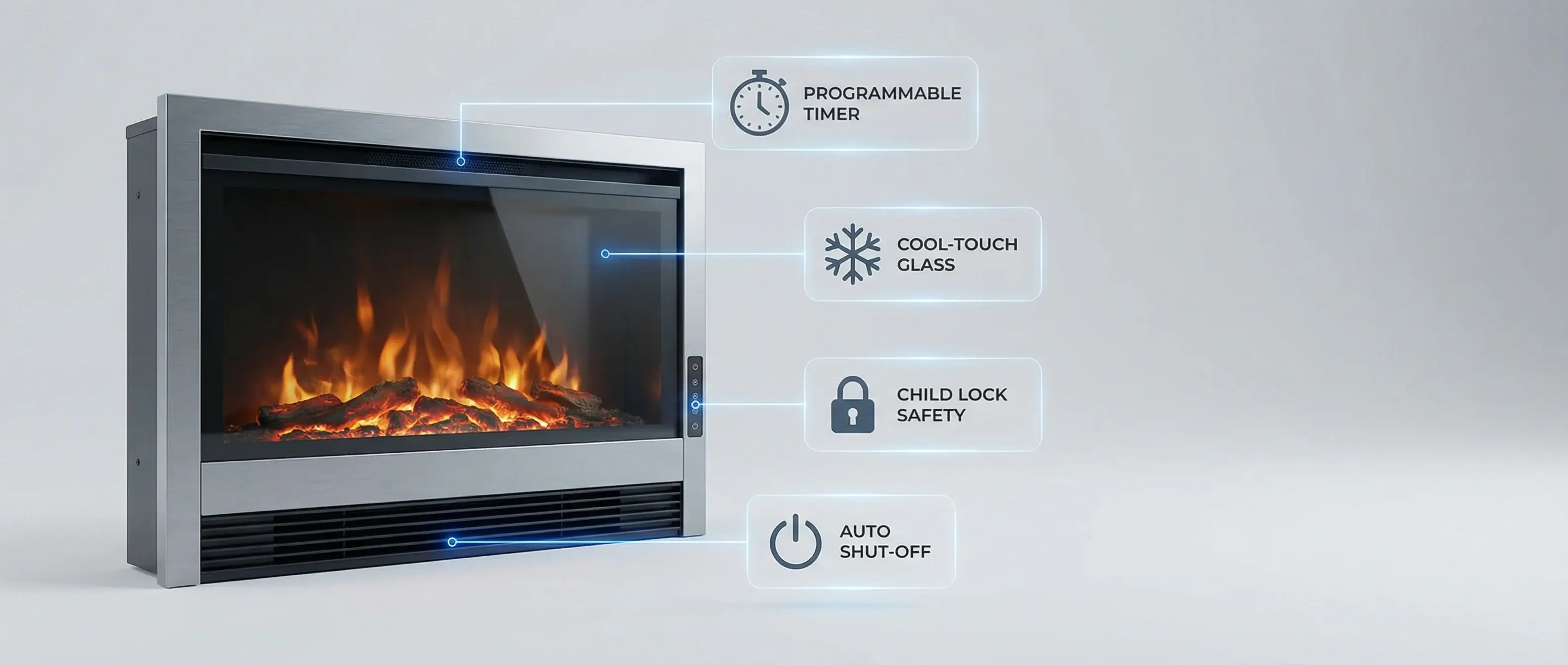 Not all electric fireplaces are created equal when it comes to safety features. Here’s what to look for when shopping with family safety in mind.