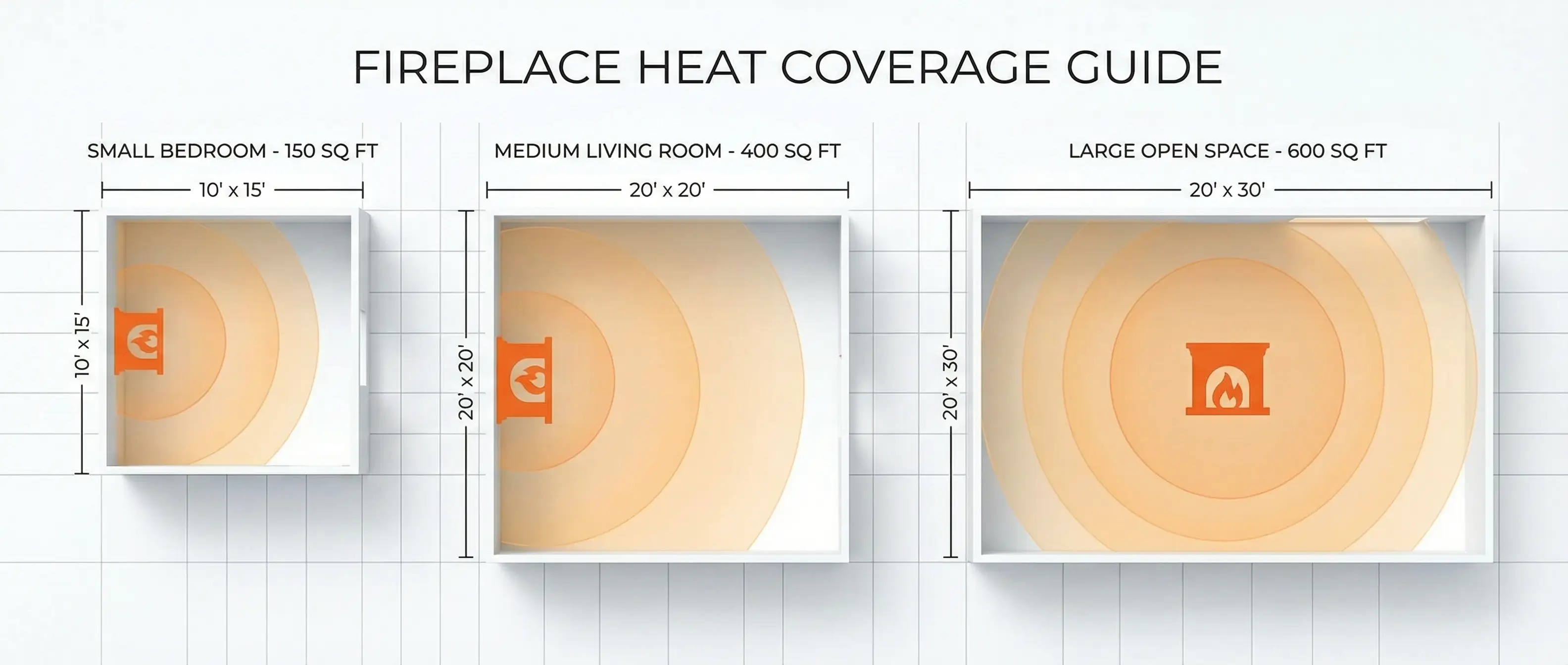 The general rule of thumb is 10 watts per square foot of space. So a 150 square foot bedroom needs about 1,500 watts, while a 300 square foot living room needs closer to 3,000 watts if you want the fireplace to do the heavy lifting on heating.